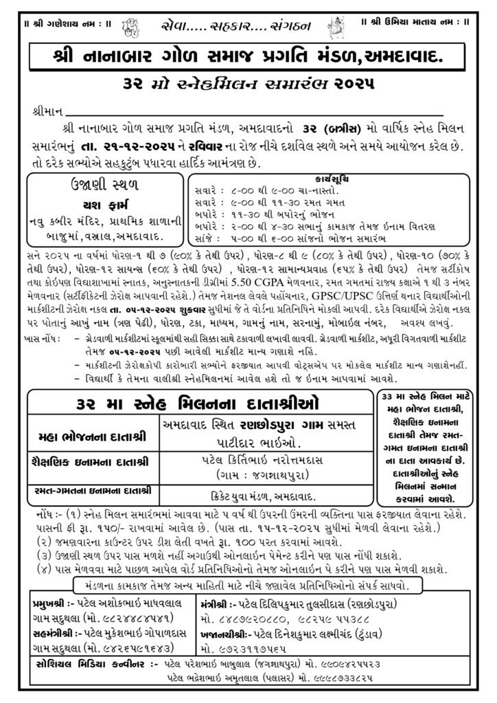 ૩૨ મો સ્નેહમિલન સમારંભ - ૨૦૨૫