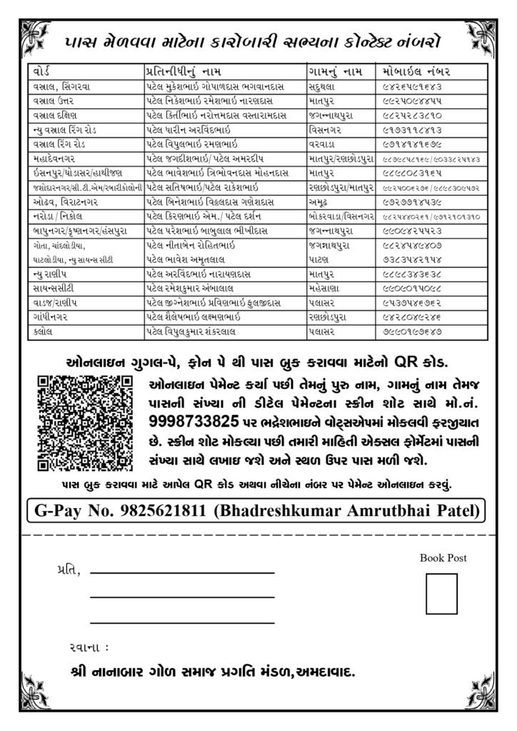 શ્રી નાનાબાર ગોળ સમાજ પ્રગતિ મંડળ, અમદાવાદ સને - ૨૦૨૫ કારોબારી સભ્યો